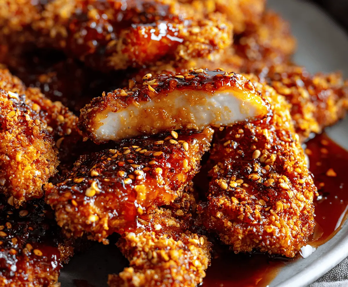 Baked Crunchy Hot Honey Chicken is a perfect mix of crispy, spicy, and sweet all in one bite. This dish features tender chicken coated in a crunchy crust and baked to golden perfection, then drizzled with a sticky hot honey glaze that brings a nice kick and just the right touch of sweetness.