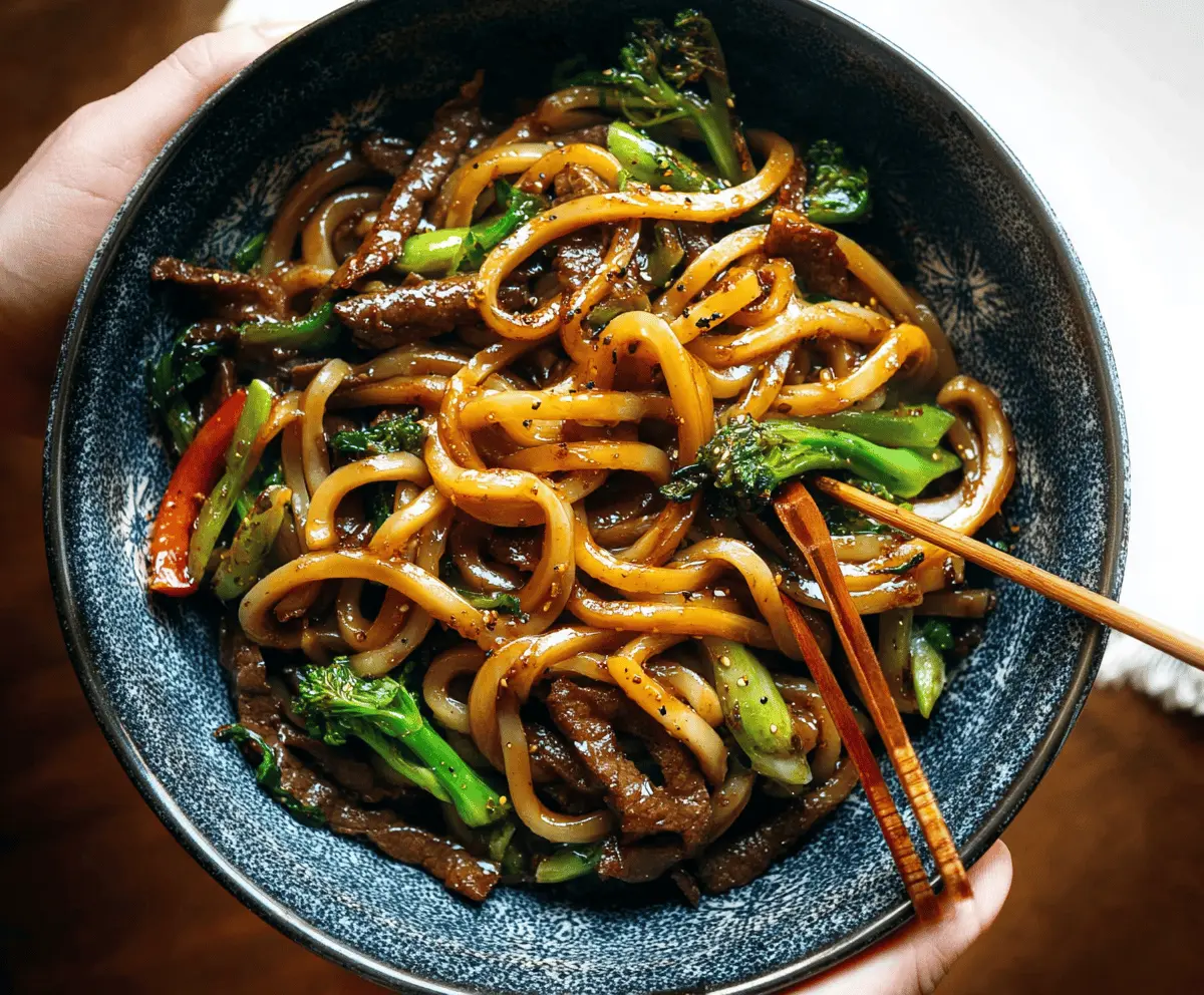 This dish takes about 20 minutes from start to finish. You’ll spend about 5-7 minutes preparing and cooking the beef and veggies, 5 minutes boiling the udon noodles, and a few minutes combining everything and thickening the sauce. It’s quick, fresh, and perfect for a tasty meal any night!