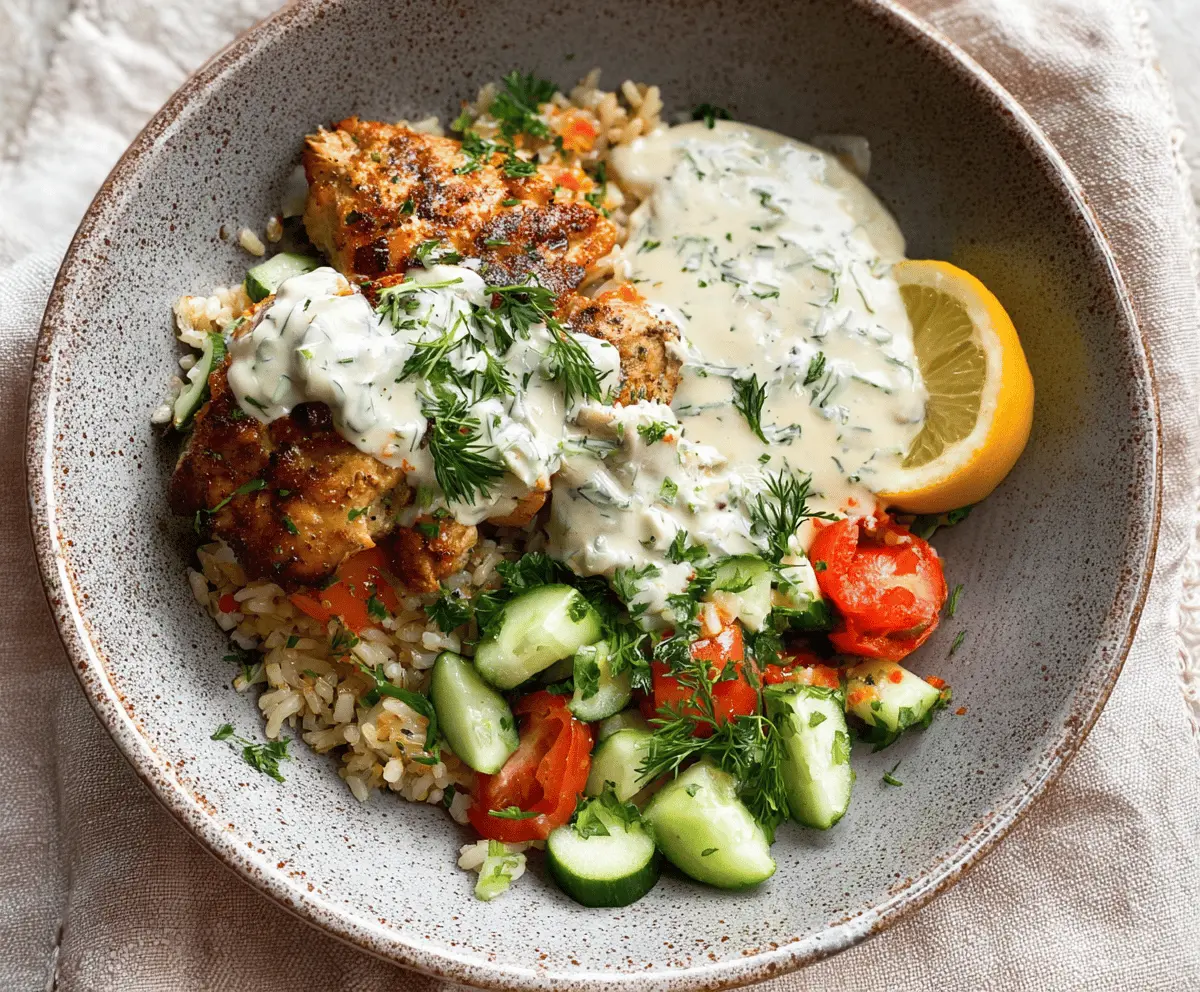 Chicken and Rice Bowls with Creamy Garlic Sauce are a comforting and hearty dish that combines tender chicken, fluffy rice, and a rich, garlicky sauce that ties everything together perfectly. The creamy garlic sauce is smooth and full of flavor, making each bite a delicious experience. It’s a simple meal that feels special without needing a lot of fuss in the kitchen.