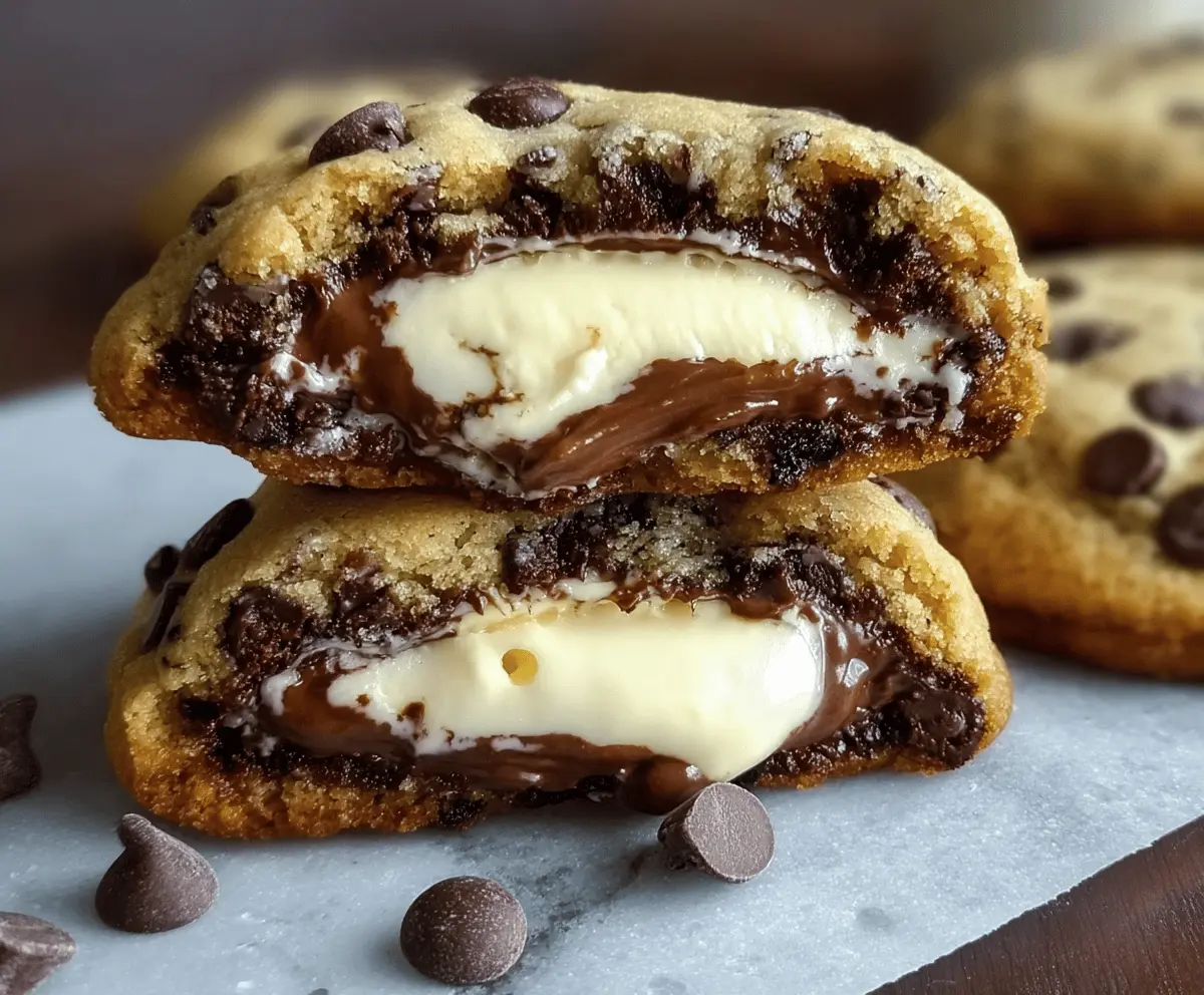 Delicious homemade chocolate chip cookies filled with creamy cheesecake, perfect for dessert or sweet cravings.