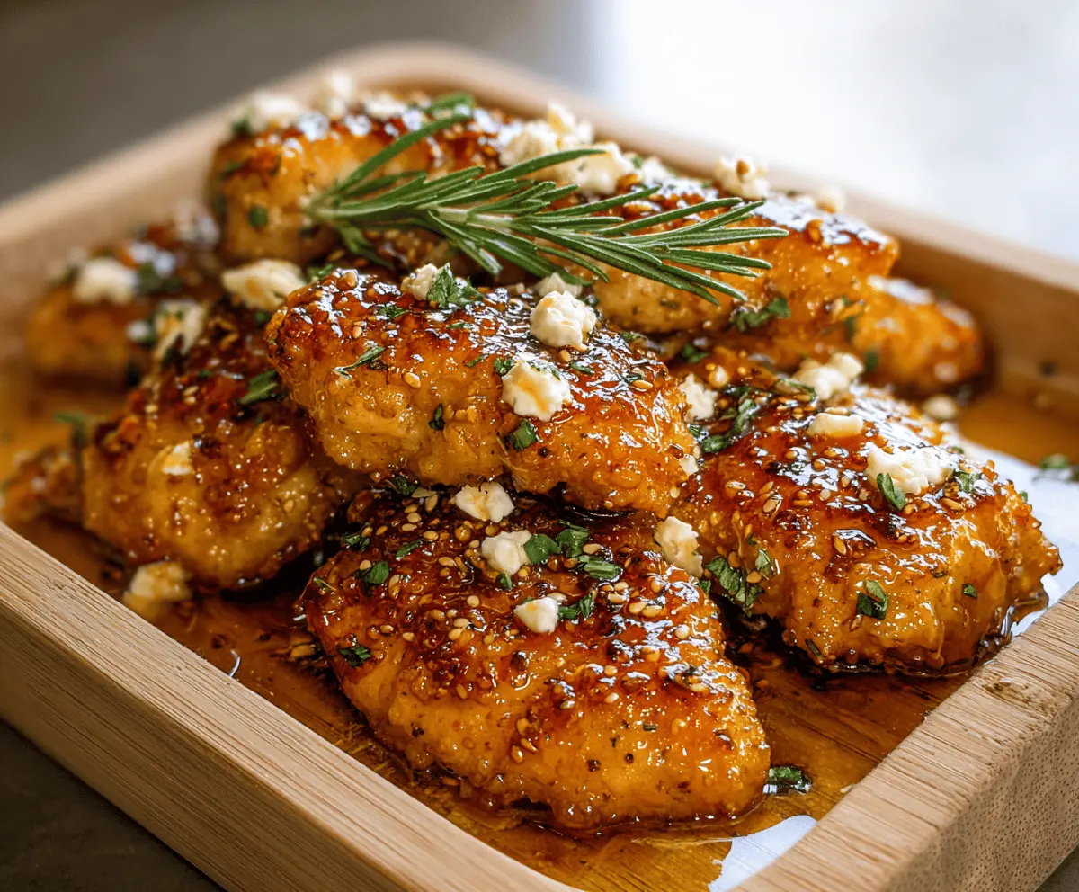 Crispy Hot Honey Feta Chicken is a perfect mix of crunchy, spicy, and creamy all in one bite. The chicken has a crispy golden crust that’s sweetened with sticky hot honey, and it’s topped with crumbled feta cheese for a salty, tangy finish that really makes the flavors pop.
