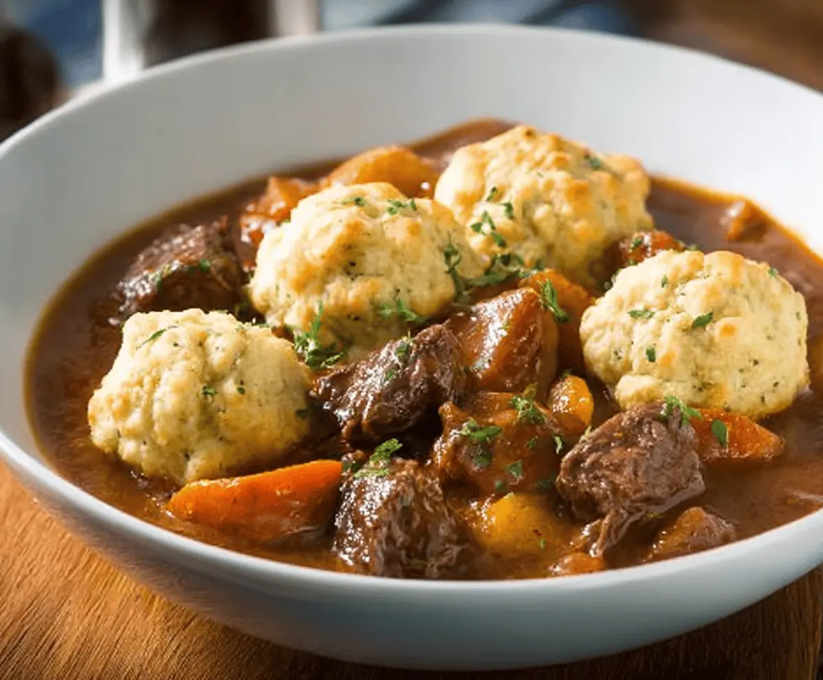 Enjoy your delicious and comforting Beef Stew and Dumplings, perfect for sharing with family and friends!