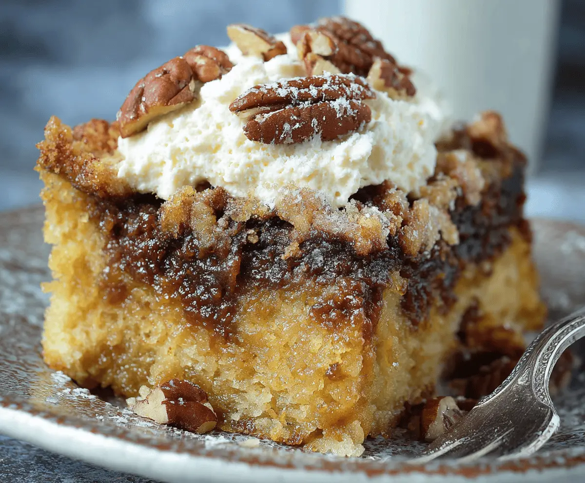 Gooey Butter Pecan Cake is a delightful treat that combines a soft, buttery cake with a rich, gooey topping loaded with crunchy pecans. The contrast between the tender cake and the sticky, nutty layer on top makes every bite full of flavor and texture. It’s one of those desserts that feels comforting and special at the same time.