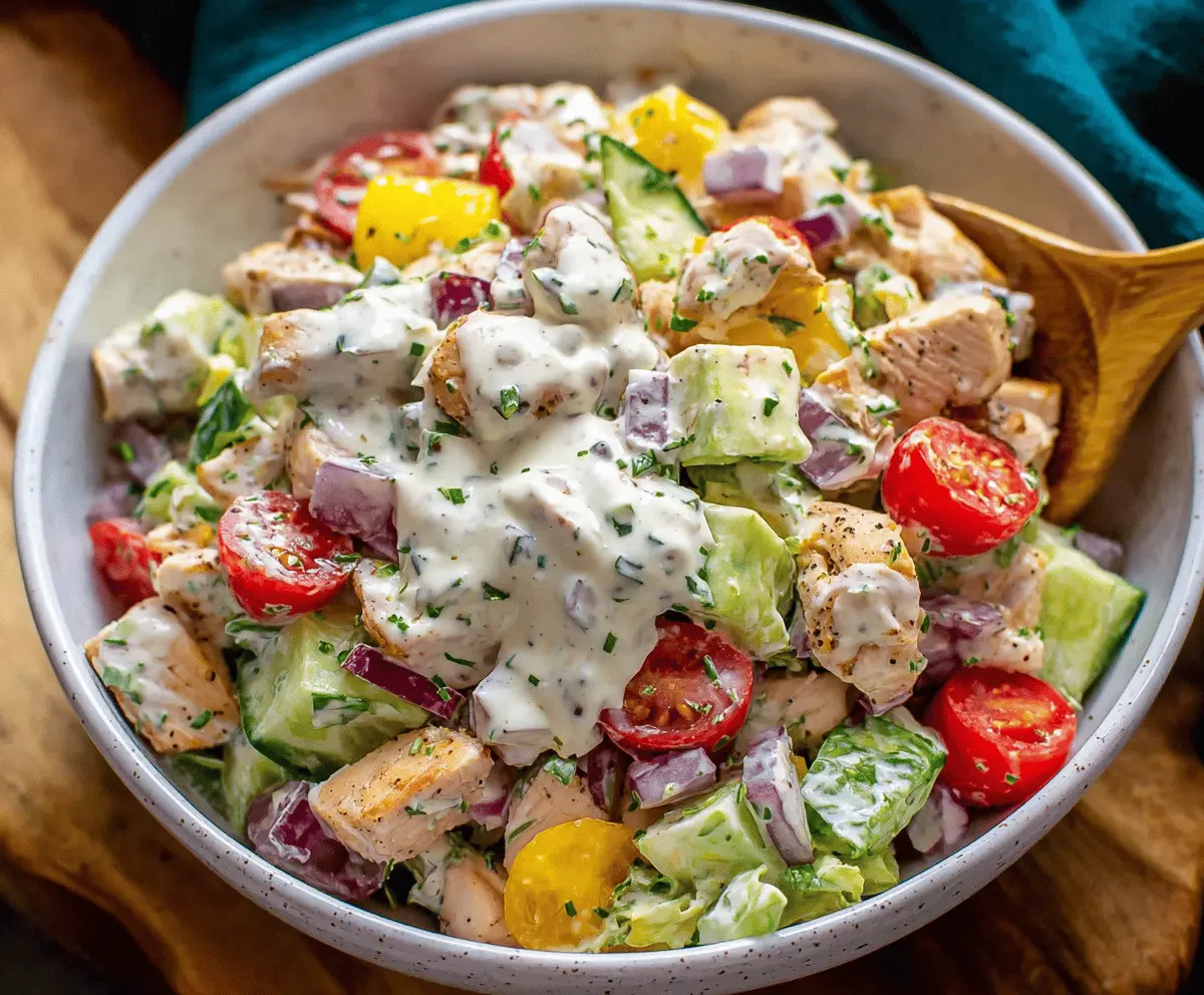 Healthy Ranch Chicken Salad is a fresh and tasty dish that brings together tender chicken, crisp veggies, and a creamy ranch dressing that’s lighter but still full of flavor. It’s a wonderful mix of protein and crunch, perfect for a quick lunch or a simple dinner that feels like a treat without any heaviness.