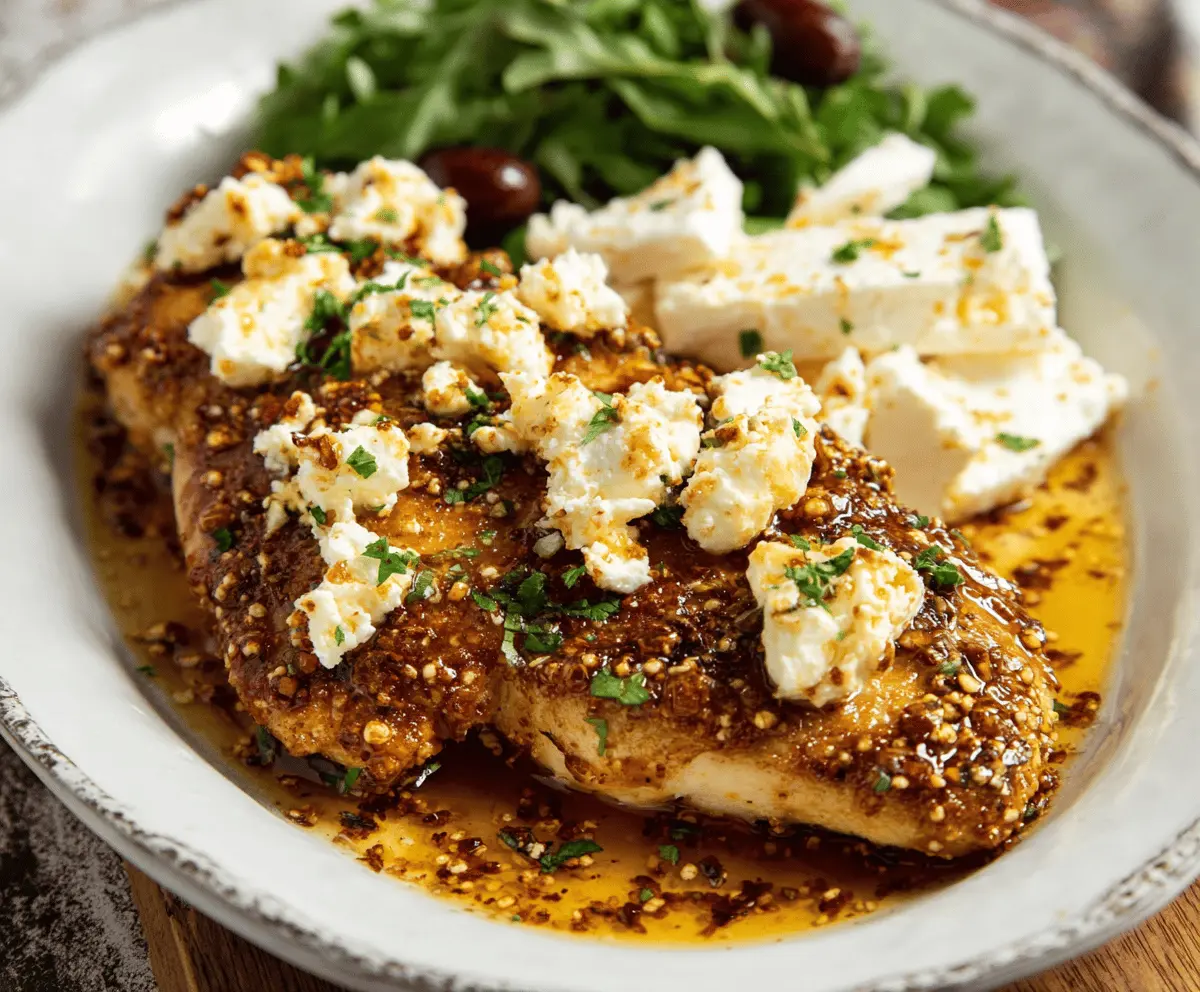 Hot Honey Feta Chicken is a mouthwatering dish that combines spicy sweetness with creamy feta cheese and tender chicken. The hot honey drizzle adds a perfect kick of warmth and a touch of sweetness, making every bite exciting. The feta brings a salty, tangy creaminess that pairs wonderfully with the juicy, perfectly cooked chicken breasts or thighs.