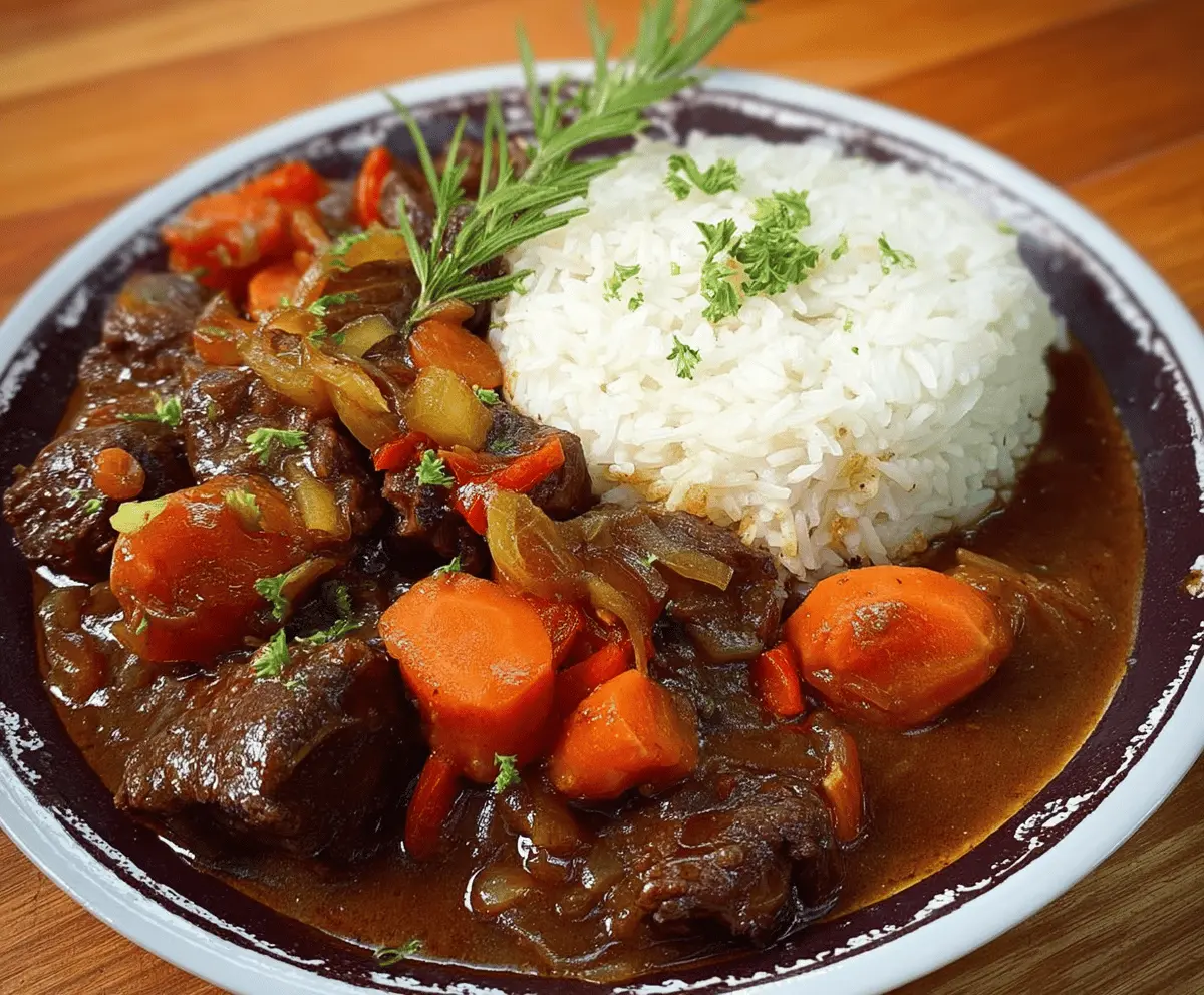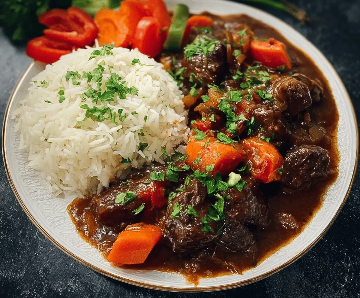 I love making this stew because the slow cooking makes the beef so tender it almost melts in your mouth. What’s great is that it’s easy to make ahead of time and the flavors only get better as it sits. I always make sure to add plenty of the rich sauce so I can spoon it generously over the rice. It’s the kind of meal that brings the whole family together, and I find myself wanting to make it again and again just because it’s so satisfying.