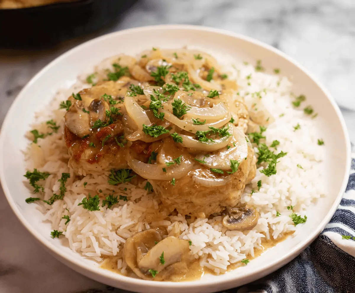 Smothered Chicken and Rice is a comforting dish that brings together tender chicken pieces cooked in a thick, flavorful gravy served over a bed of fluffy rice. The rich sauce, often made with onions, garlic, and a blend of herbs, seeps into the rice, making each bite warm and satisfying. It’s the kind of meal that feels like a big, cozy hug on a plate.
